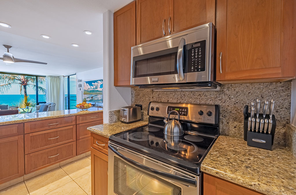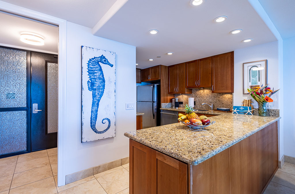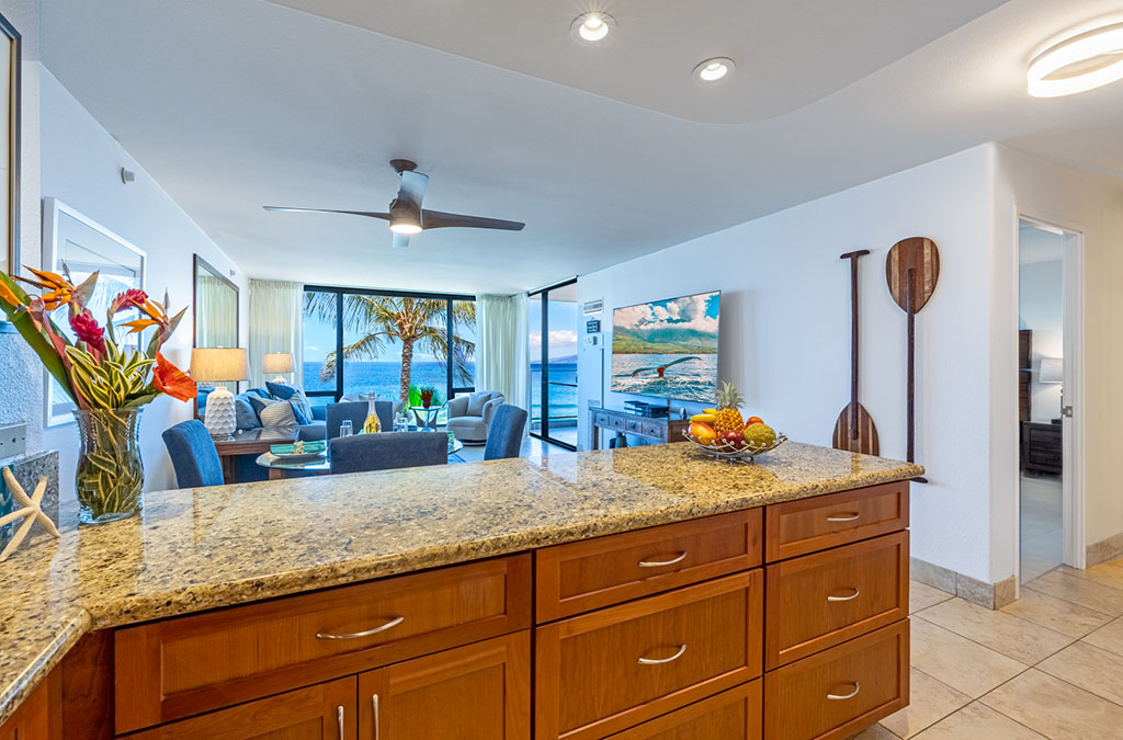 After working up an appetite, take the 100-yard beach walk stroll down to Duke’s Beach House Restaurant. This complex is centrally located near a myriad of local restaurants, food trucks and a full-service grocery store for your convenience. The grounds and landscaping of the Mahana are flawless and who wouldn’t enjoy playing tennis or pickleball under the shade of giant monkeypod trees on the private on-site court.